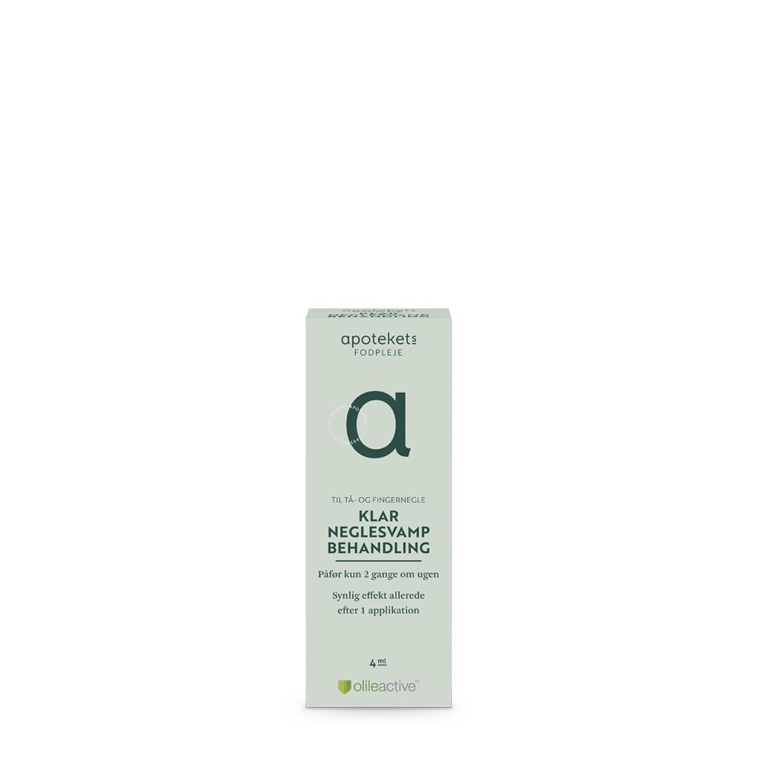 Apotekets Neglesvampbehandling er en klar opløsning med Olile-Active™, en aktiv ingrediens, som forhindrer neglesvampen i at formere sig og sikrer, at neglesvampen ikke kan overleve. Der vil hurtigt være en synlig bedring af den inficerede negl, som bliver lysere og mere jævn og glat. Mange ser en forandring på neglen allerede efter første påføring.