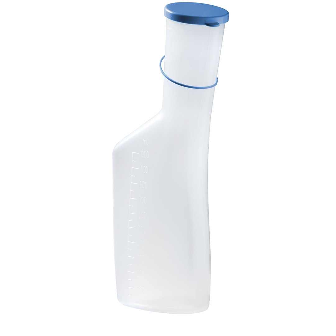 Der tisses direkte ned i Apotekets Urinbeholder, hvorefter låget sættes på for at forhindre lugtgener.