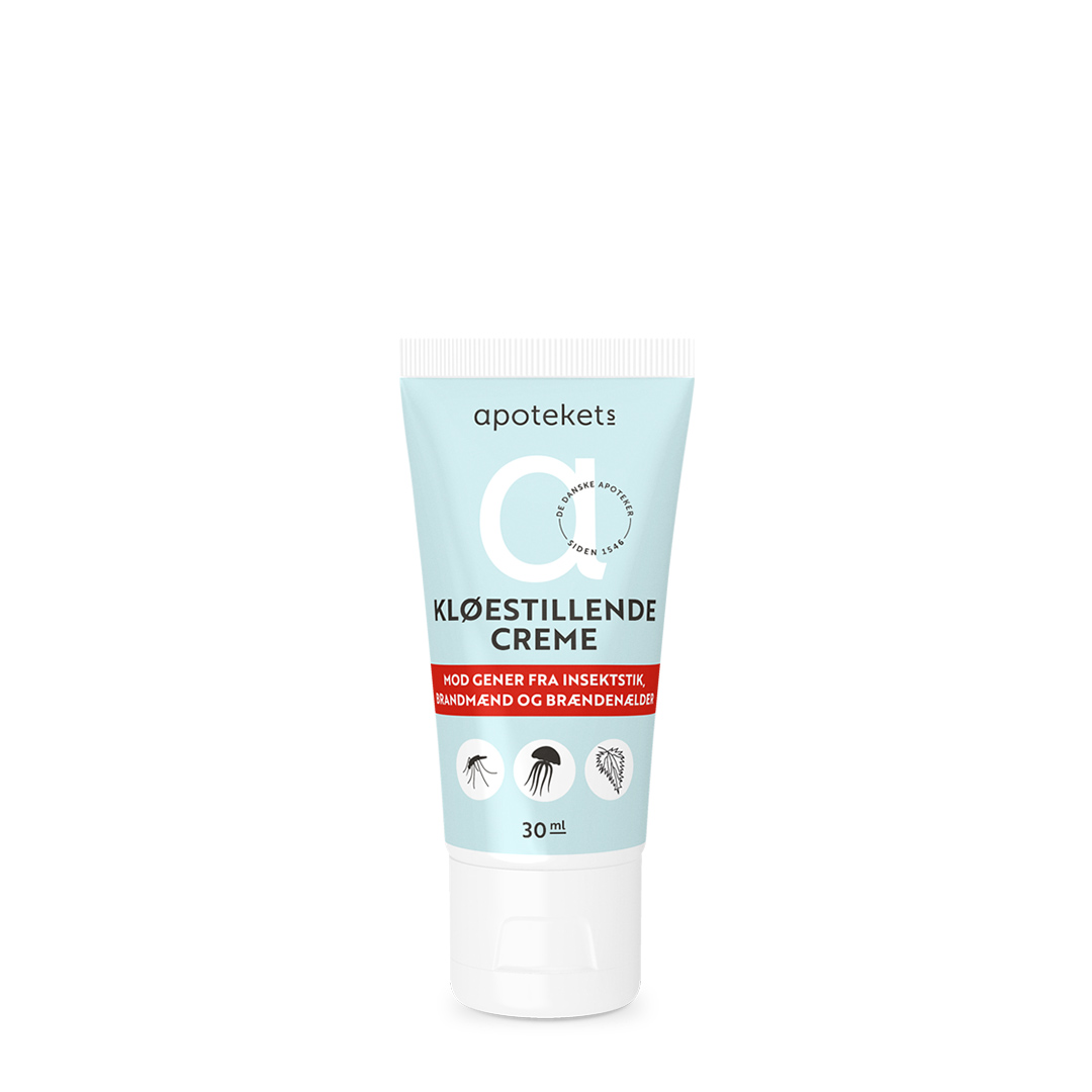 Apotekets Kløestillende Creme anvendes mod gener fra myggestik og andre insektbid samt kontakt med brændenælder og brandmænd.