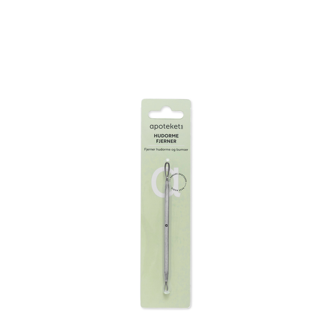 Apotekets Hudormefjerner fjerner hygiejnisk, effektivt og skånsomt hudorme og bumser uden at ødelægge huden og danne ar.
