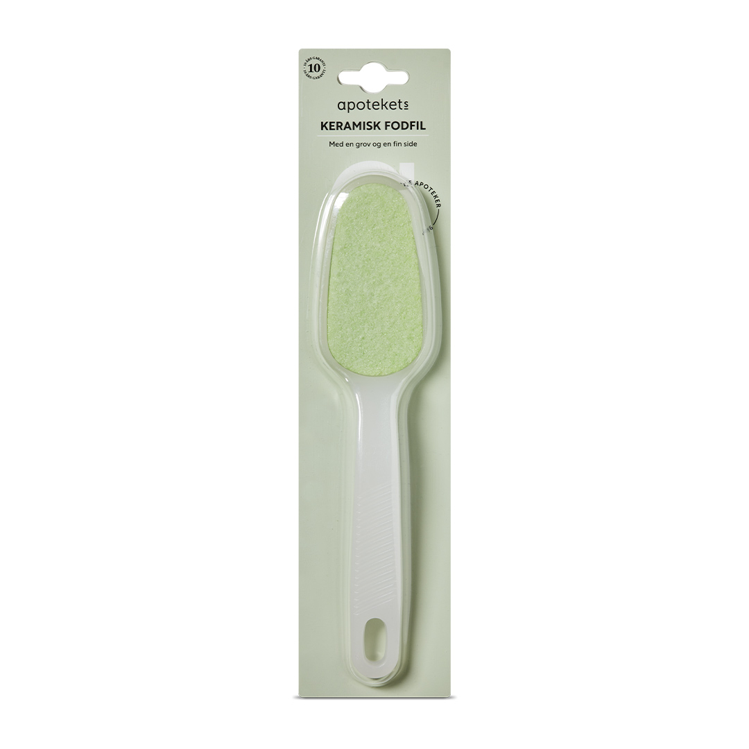 Apotekets Keramisk Fodfil hjælper med at fjerne hård hud på fødderne uden at beskadige huden. Apotekets Keramisk Fodfil er dobbeltsidet med en ru side til særligt hård hud, og en finere side til mere nænsom fodpleje.