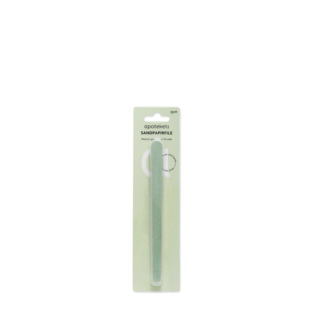Apotekets Sandpapirfile er 17 cm lange. Der er 10 dobbeltsidede neglefile i pakken.