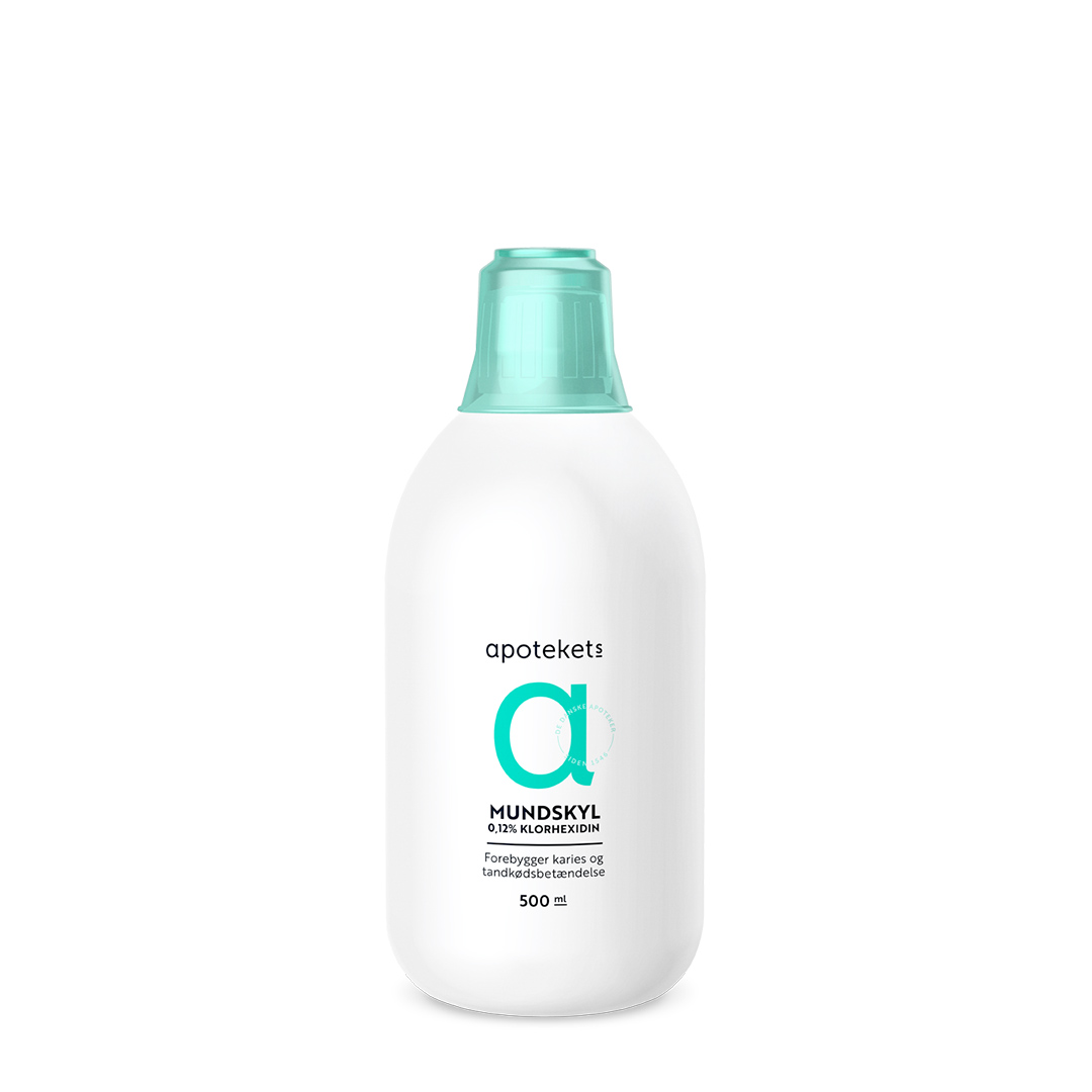Apotekets Klorhexidin Mundskyllevæske 0,12% kan anvendes 2-3 gange dagligt i op til 3 uger, eller efter anvisning fra tandlæge eller tandplejer.