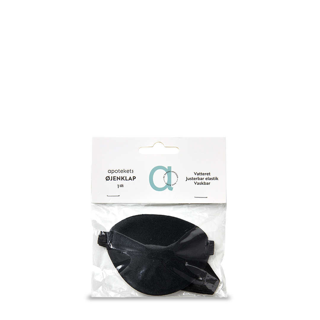 Apotekets Øjenklap er en behagelig, vatteret, vaskbar øjenklap, der bevarer faconen. Øjenklappen dækker og beskytter øjet, og har en bred, justerbar elastik, så den nemt kan tilpasses.