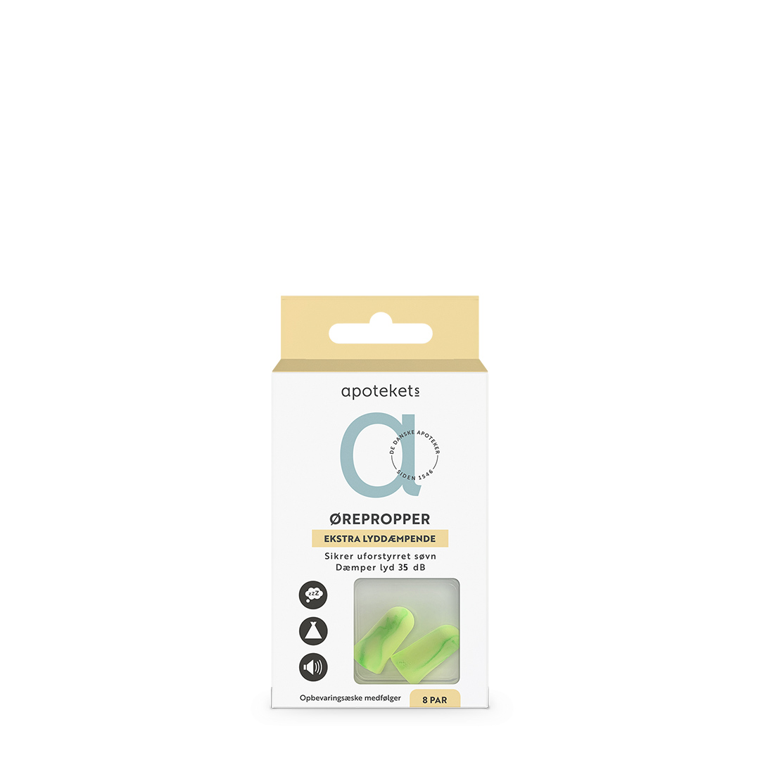 Apotekets Ørepropper - ekstra lyddæmpende dæmper lyd med 35 dB. Ørepropperne yder effektiv beskyttelse mod støj fra omgivelserne og sikrer ro og uforstyrret søvn hjemme eller på rejse.