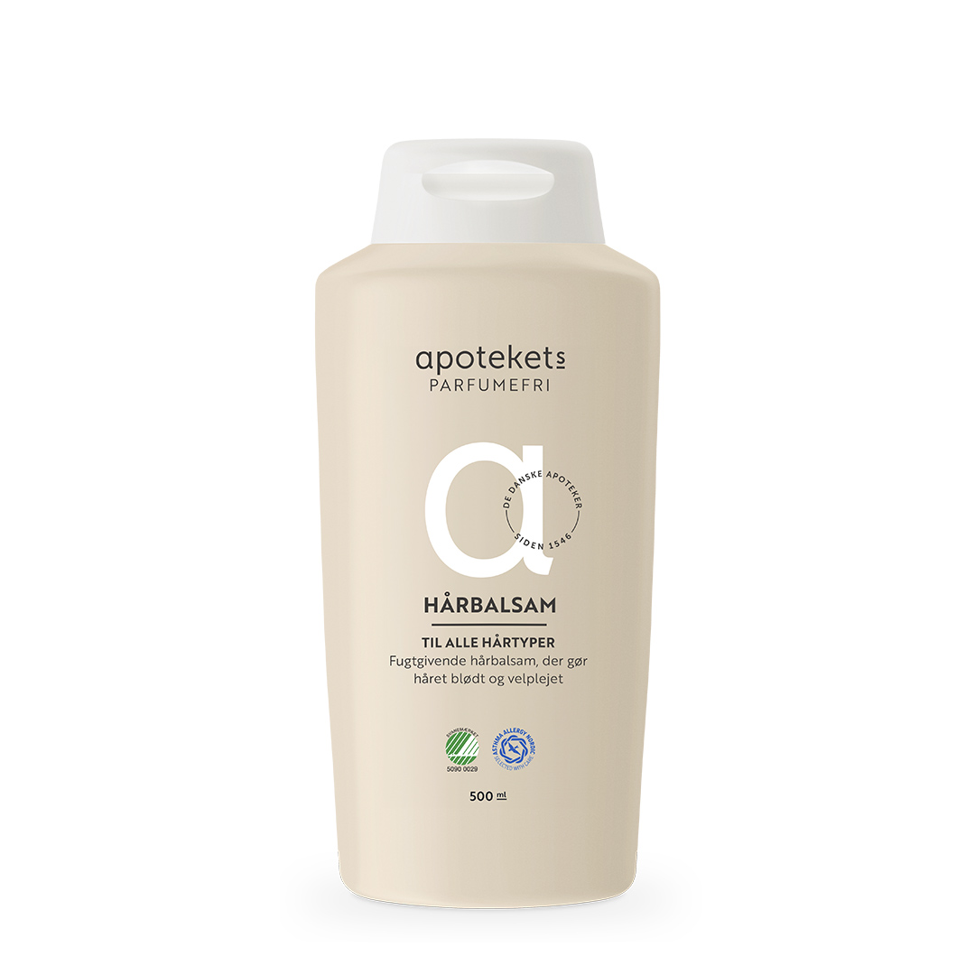 Apotekets Parfumefri Hårbalsam tilfører ekstra pleje til nyvasket hår. Samtidig bliver håret lettere at rede ud, så der slides mindre på håret.
