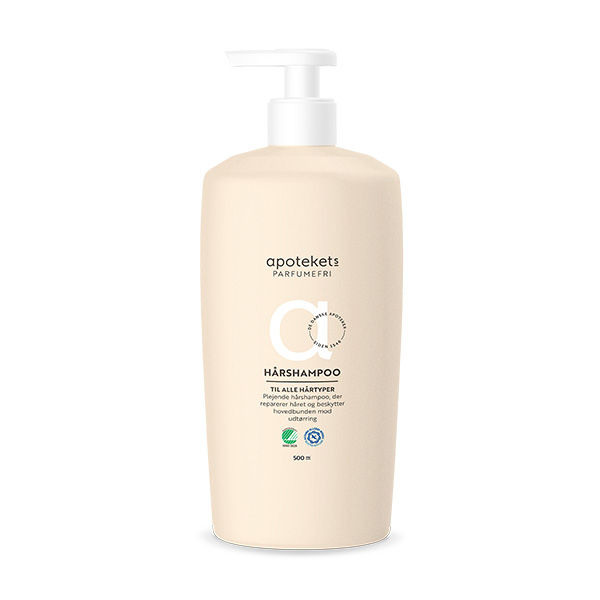 Apotekets Parfumefri Hårshampoo er en mild, plejende hårshampoo, der beskytter fugtbalancen i hovedbunden.