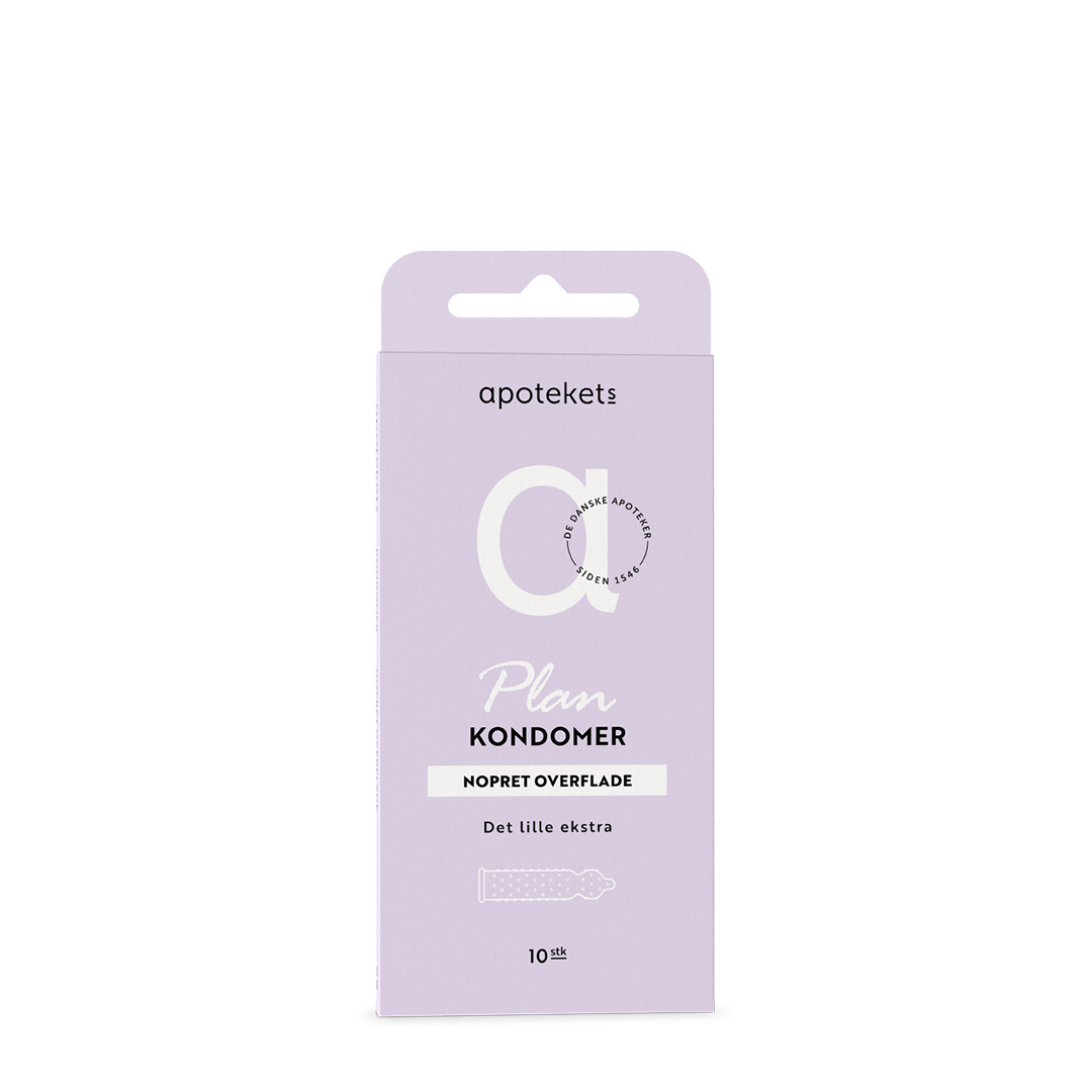 Apotekets Plan - Nopret overflade er et kondom med nopper. Kondomet har profileret top og reservoir. Det er cremebehandlet på ydersiden og pudret med majsstivelse på indersiden for at forhindre, at det glider af.
