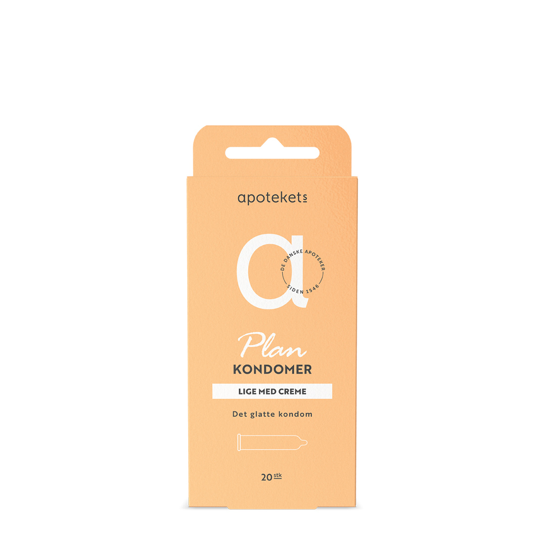 Apotekets Plan - Lige med creme, er et transparent kondom med reservoir og glat overflade. Det er cremebehandlet på ydersiden og pudret med majsstivelse på indersiden for at forhindre, at det glider af.