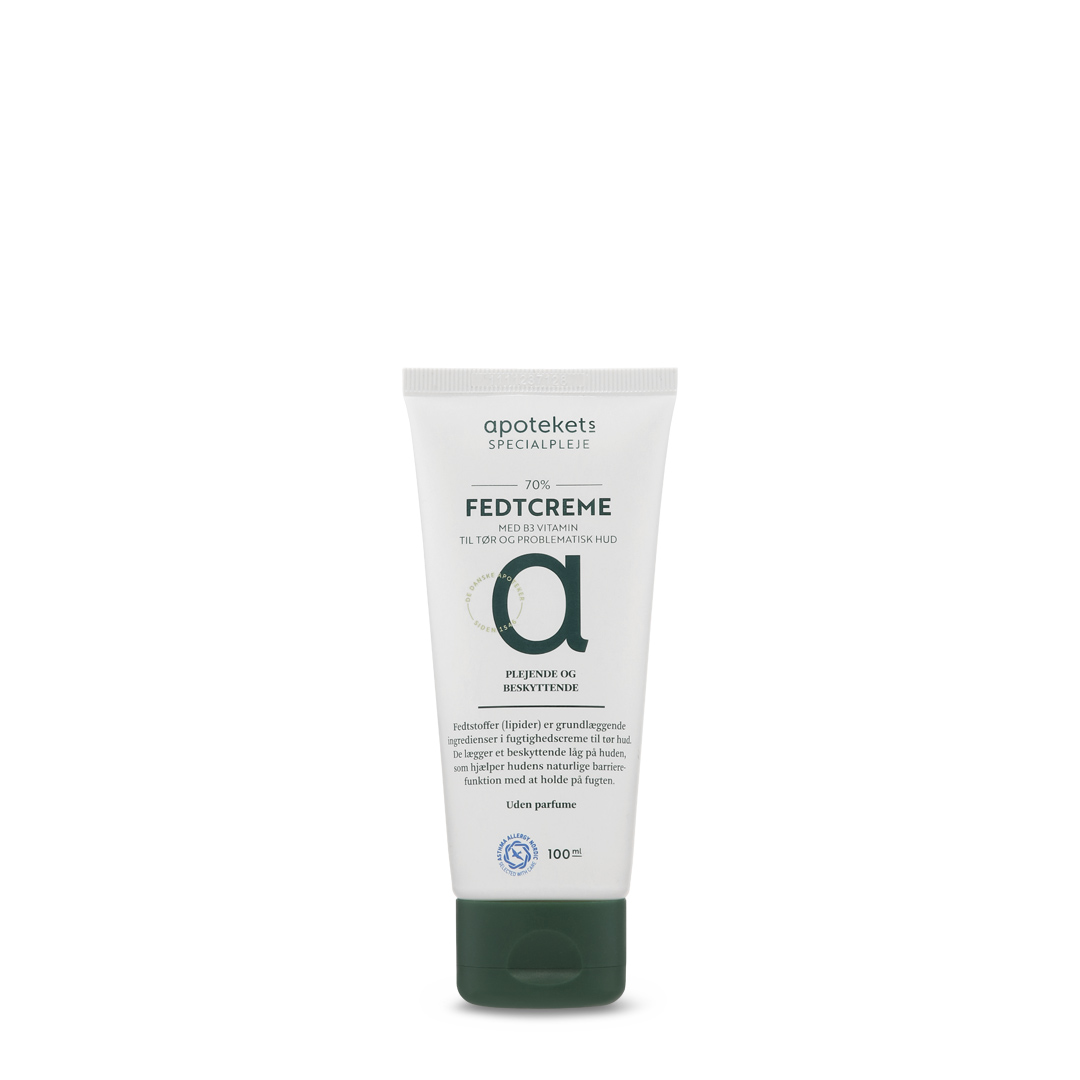 Apotekets Fedtcreme 70% er velegnet til både børn og voksne, som har behov for specialpleje til meget tør hud.