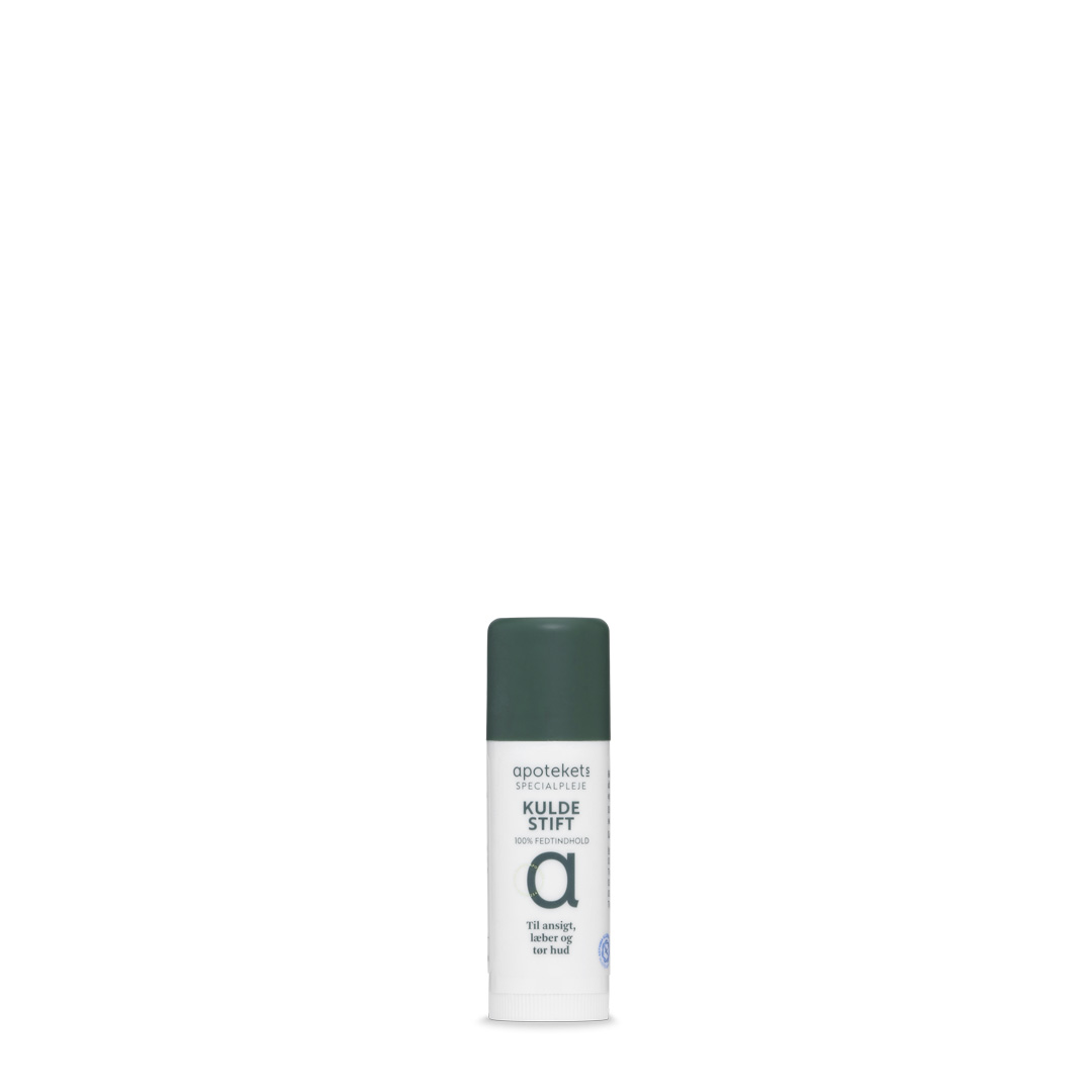 Frost og kulde udtørrer huden og gør huden mere sårbar og modtagelig for skader. Derfor har huden brug for beskyttelse udendørs om vinteren, når kulden bider. Kroppen og hænderne kan beskyttes med varmt tøj og vanter, men ansigtet er særligt udsat for kulden – og her kommer Apotekets vandfri kuldestift til hjælp. Kuldestiften indeholder bl.a. vegetabilske olier, lanolin og squalane, som blødgør, fugter og beskytter huden.