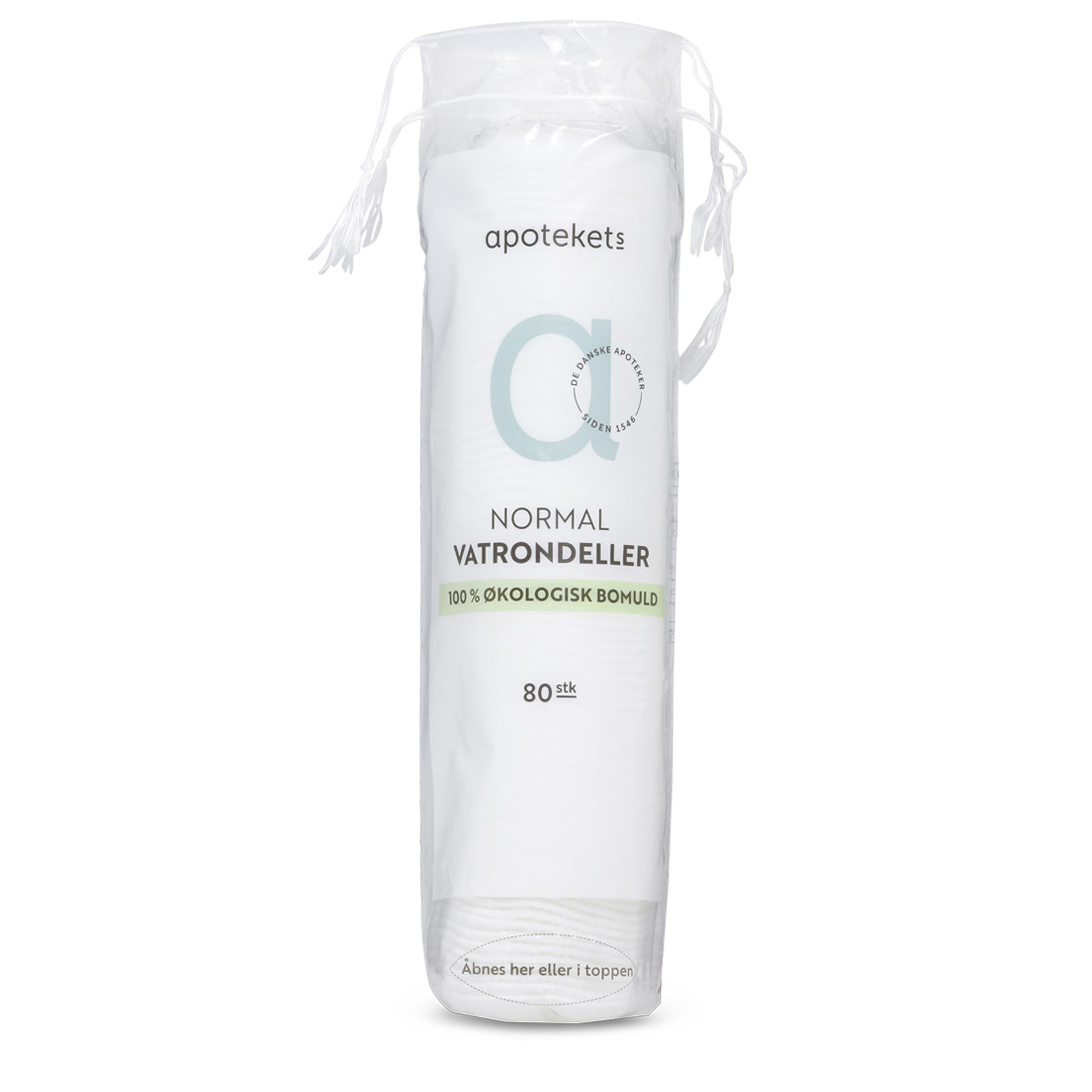 Apotekets Vatrondeller er fremstillet af 100% økologisk bomuld. Vatrondellerne har blød, forseglet kant, så de hverken fnugger eller deler sig.